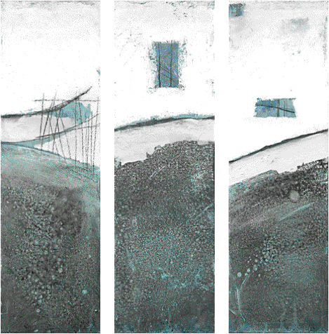 Acryl/Tusche/Sand auf Leinwand, je 30 x 100 cm