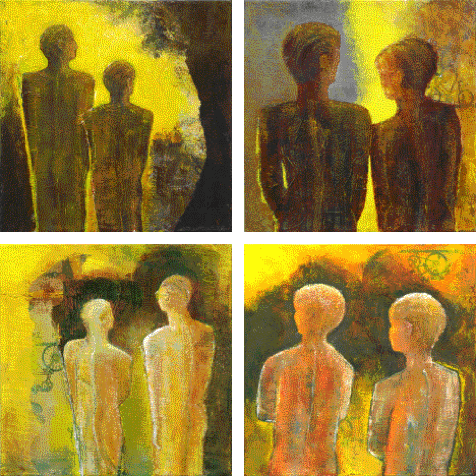 Acryl/Collage auf Leinwand, je 20 x 20 cm