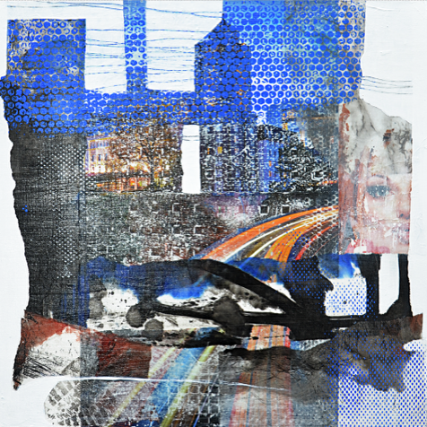 Acryl/Collage auf Holz, 60 x 60 cm