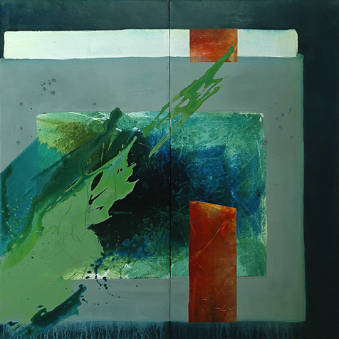 Acryl/Tusche/Collage auf Leinwand, 100 x 100 cm