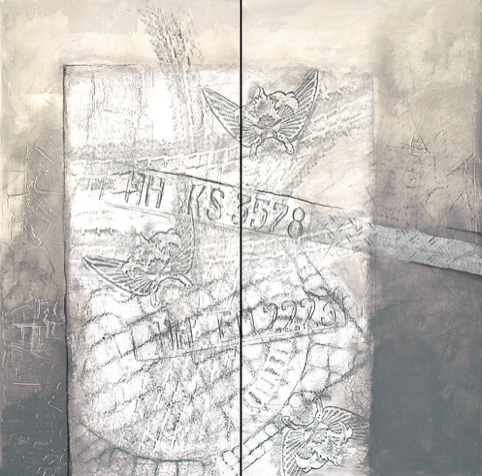 Acryl/Collage auf Leinwand, 120 x 120 cm